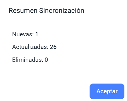 Una vez completada la sincronización, aparecerá un resumen del proceso confirmando que la operación fue exitosa.