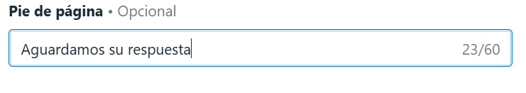 Texto adicional que aparece al final del mensaje, ideal para información de contacto o avisos legales.